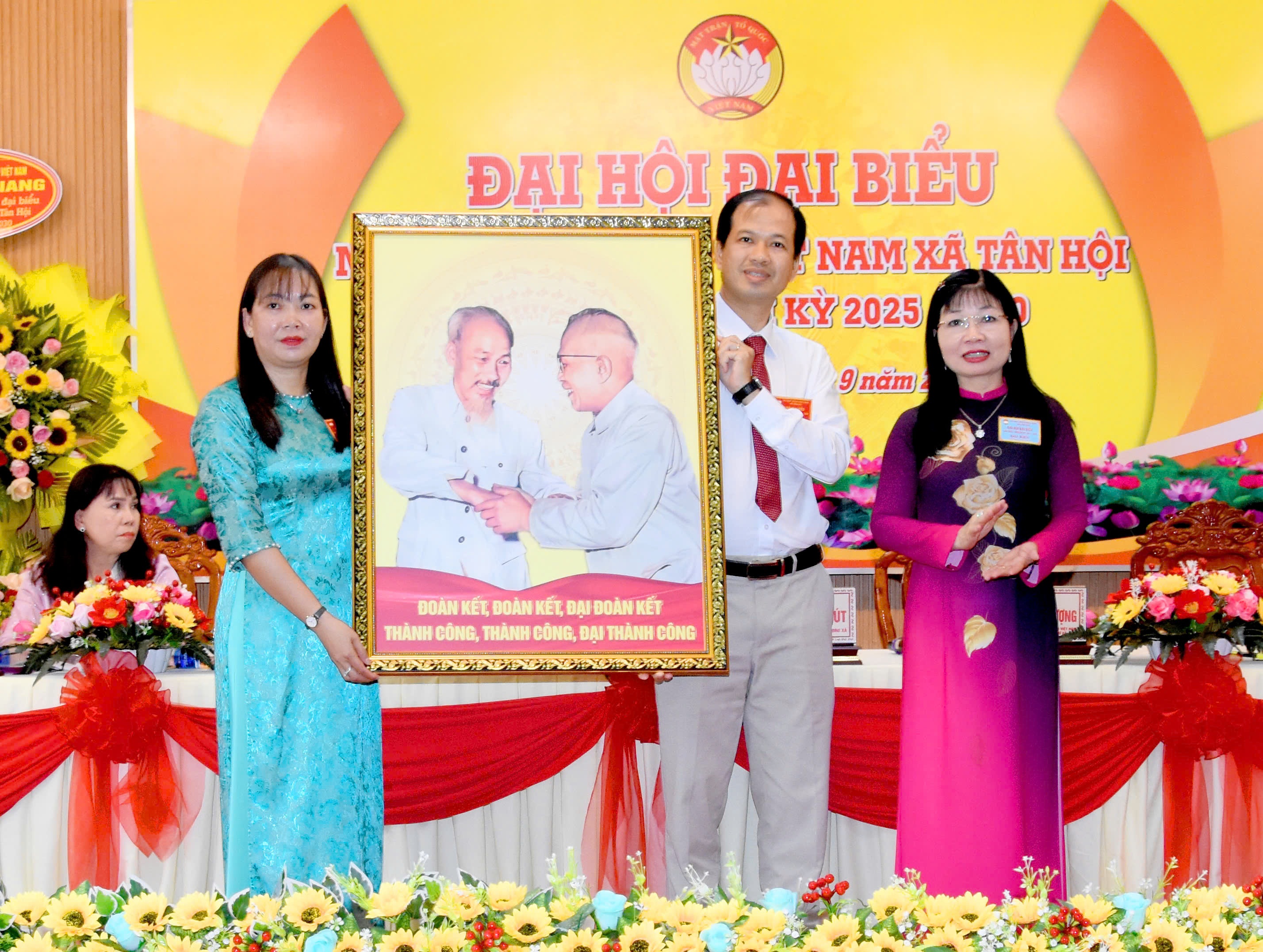 Dịp này, đồng chí Trần Thị Thanh Hương trao tặng đại hội bức tranh Bác Hồ - Bác Tôn, biểu tượng của tinh thần đại đoàn kết toàn dân tộc.