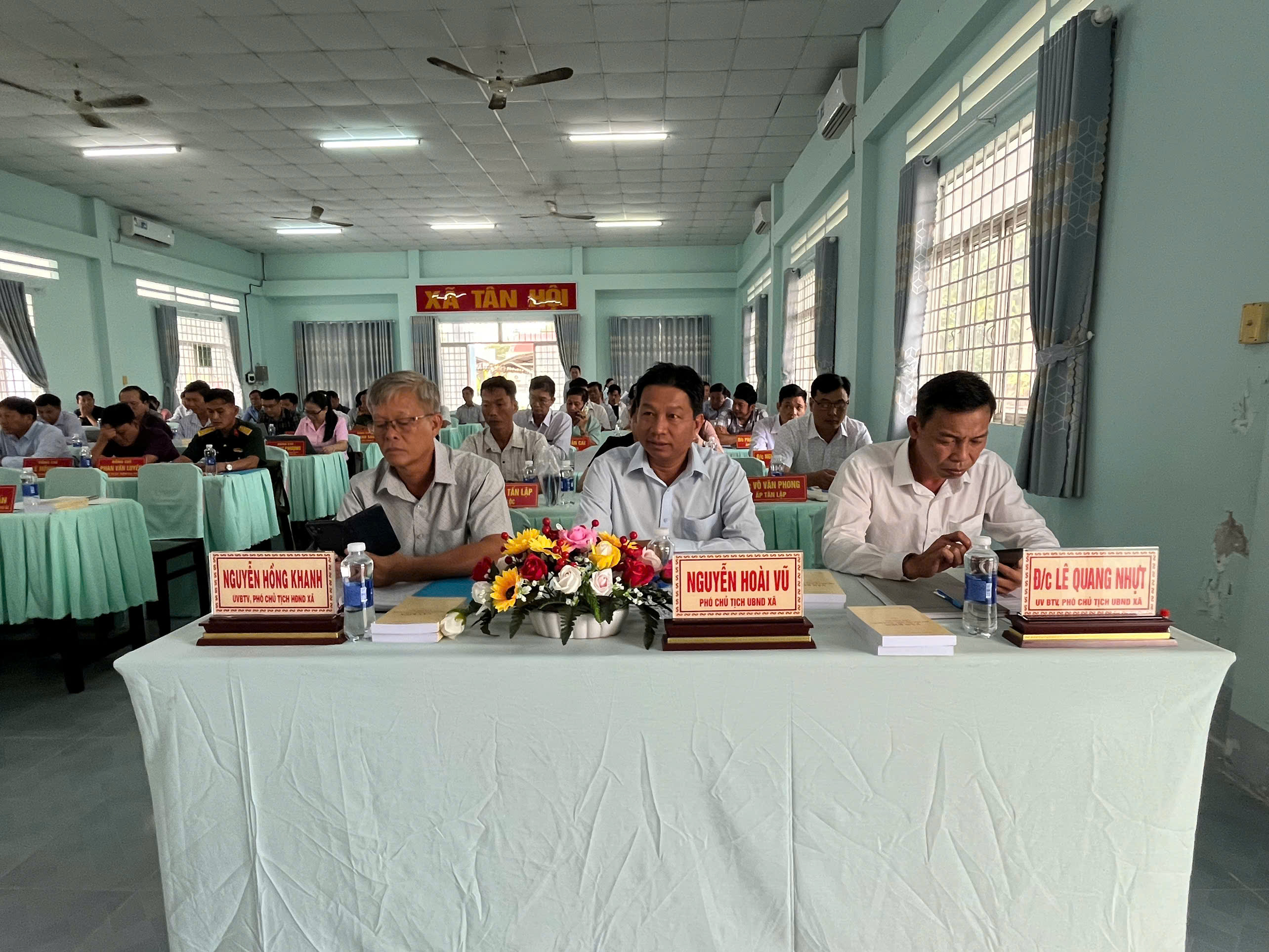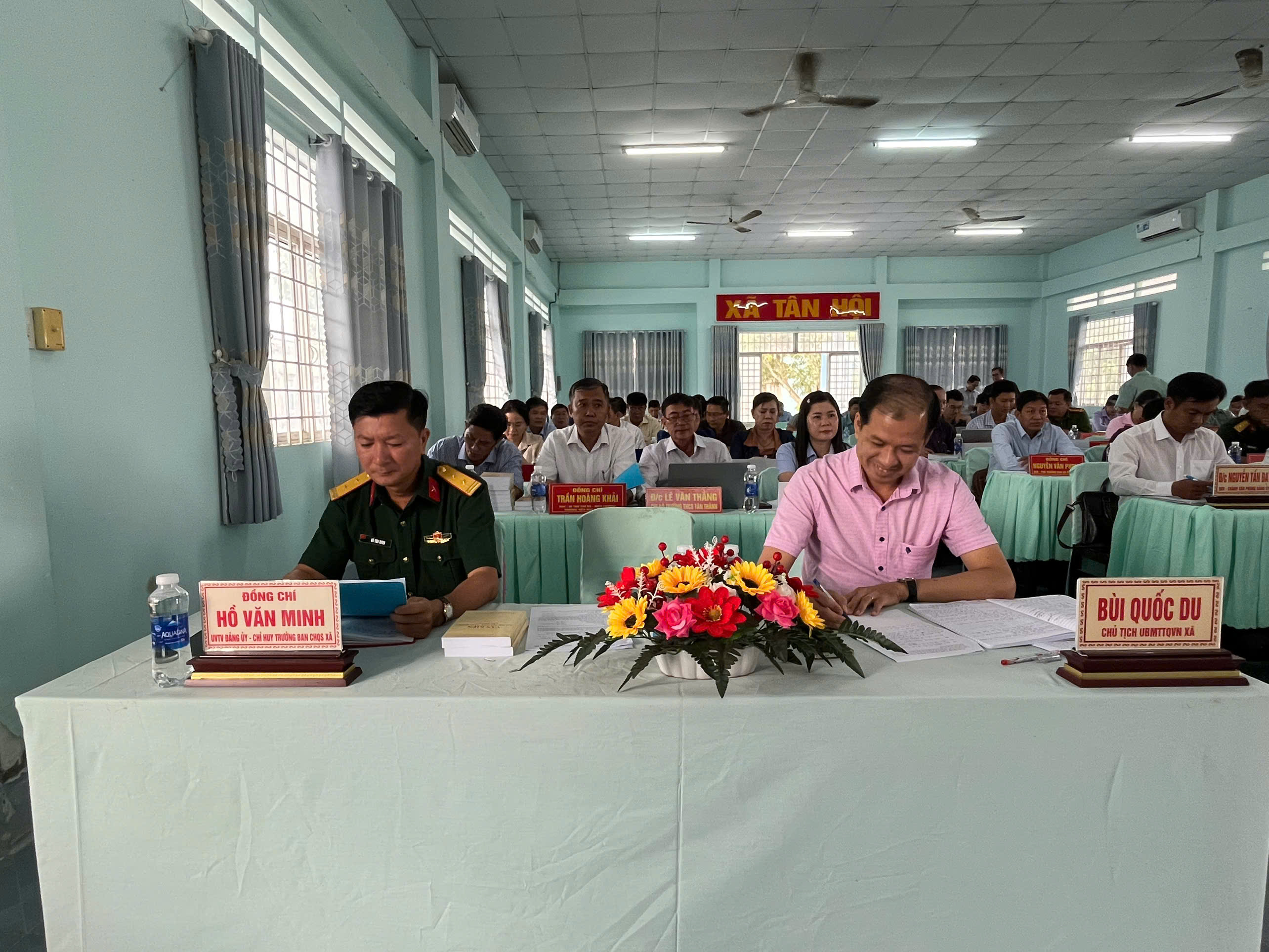 Chủ trì Hội nghị có đồng chí Nguyễn Hoàng Kha, Bí thư Đảng ủy xã; đồng chí Lâm Văn Út, Phó Bí thư Thường trực Đảng ủy, Chủ tịch HĐND xã; đồng chí Nguyễn Minh Ngọc, Phó Bí thư Đảng ủy, Chủ tịch UBND xã.