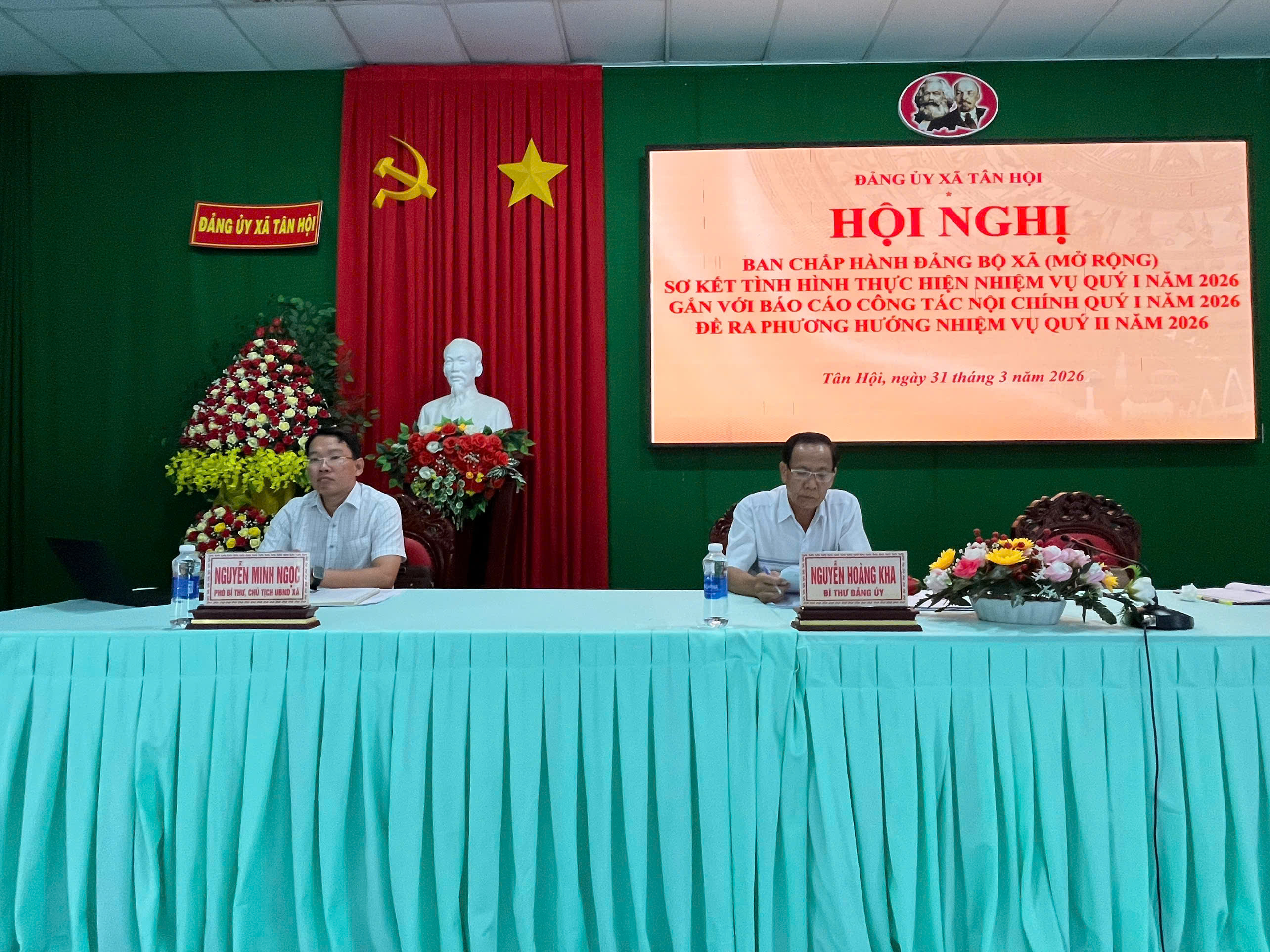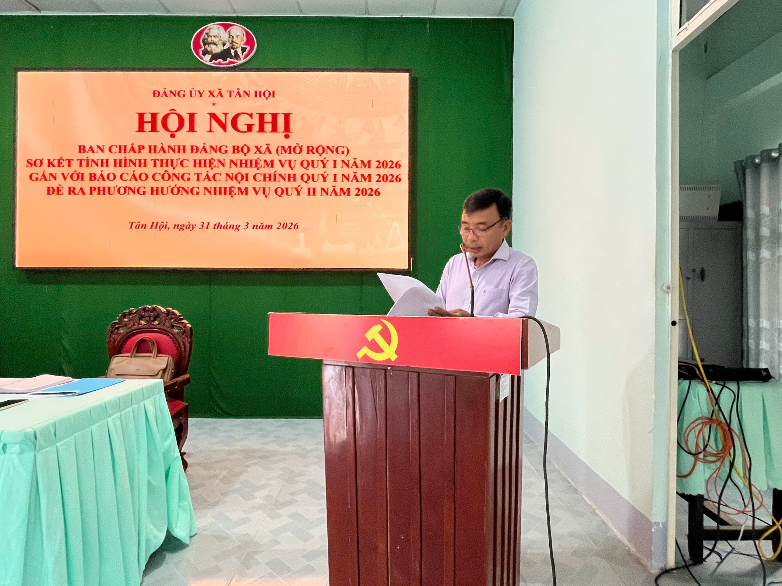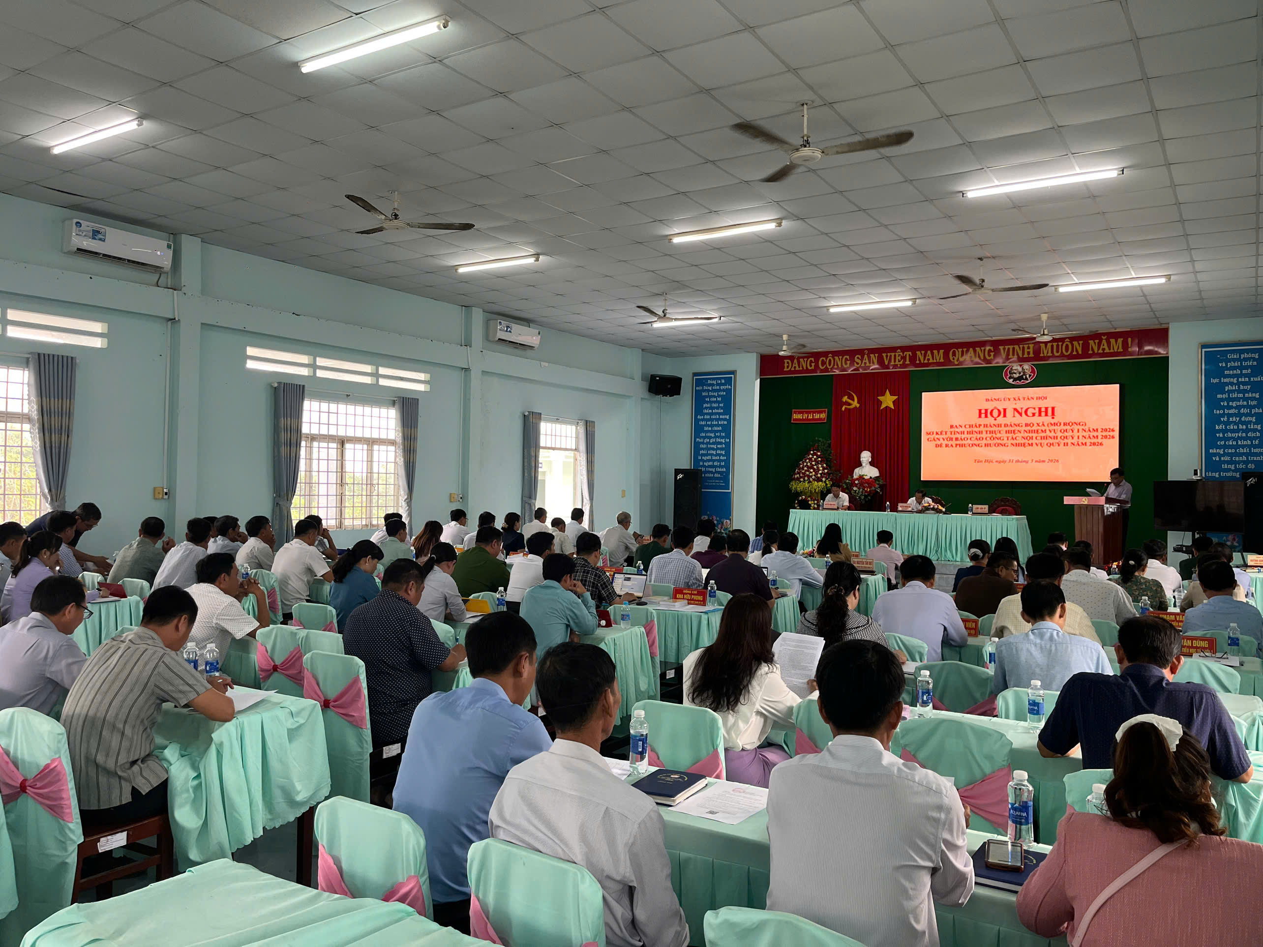 Sáng ngày 31/3/2026, Ban Chấp hành Đảng bộ xã Tân Hội long trọng tổ chức Hội nghị Ban Chấp hành Đảng bộ xã (Mở rộng) Sơ kết tình hình thực hiện nhiệm vụ Quý I năm 2026 gắn với Báo cáo tình hình thực hiện nhiệm vụ phát triển kinh tế - xã hội quý I năm 2026, phương hướng nhiệm vụ quý II năm 2026; Báo cáo công tác nội chính, phòng, chống tham nhũng, lãng phí, tiêu cực và cải cách tư pháp quý I năm 2026 và đề ra phương hướng, nhiệm vụ quý II năm 2026.