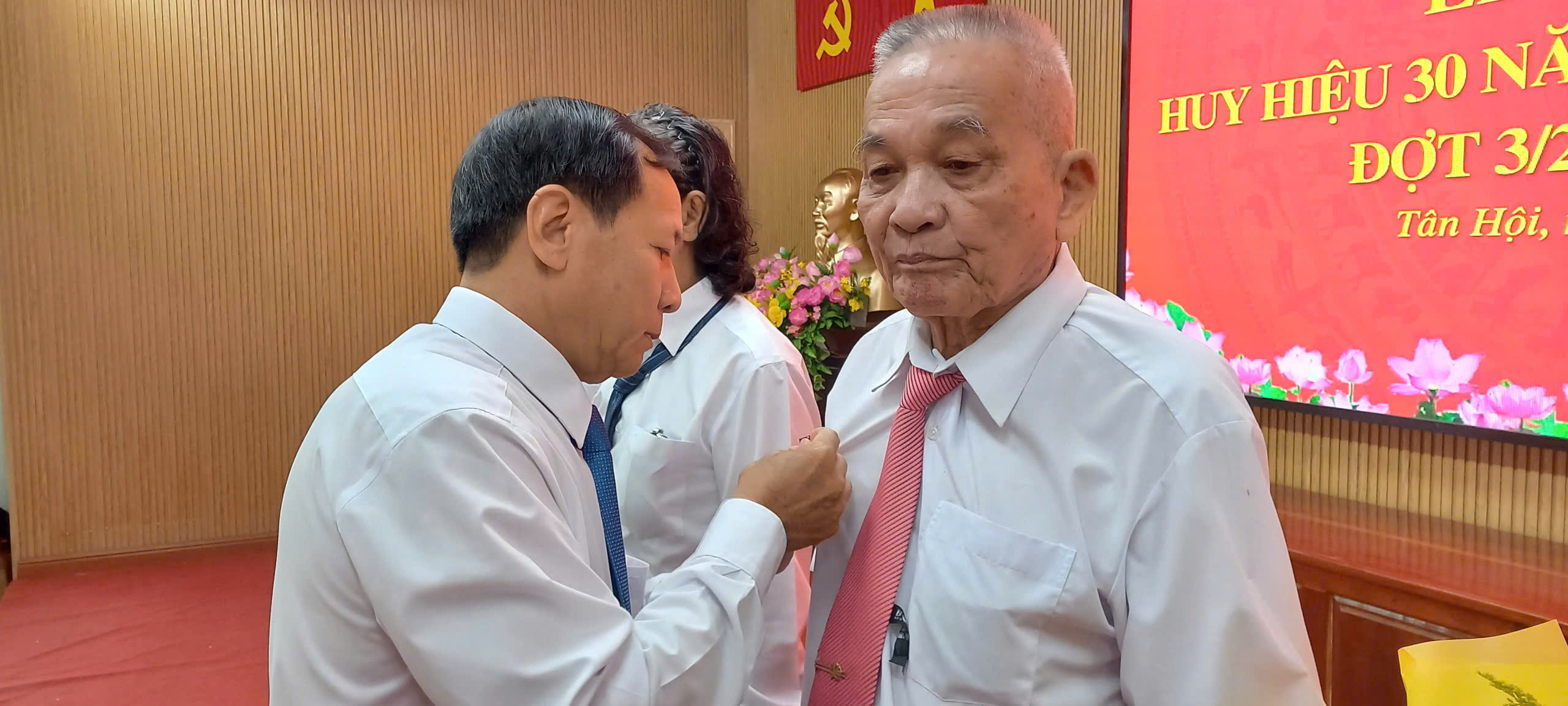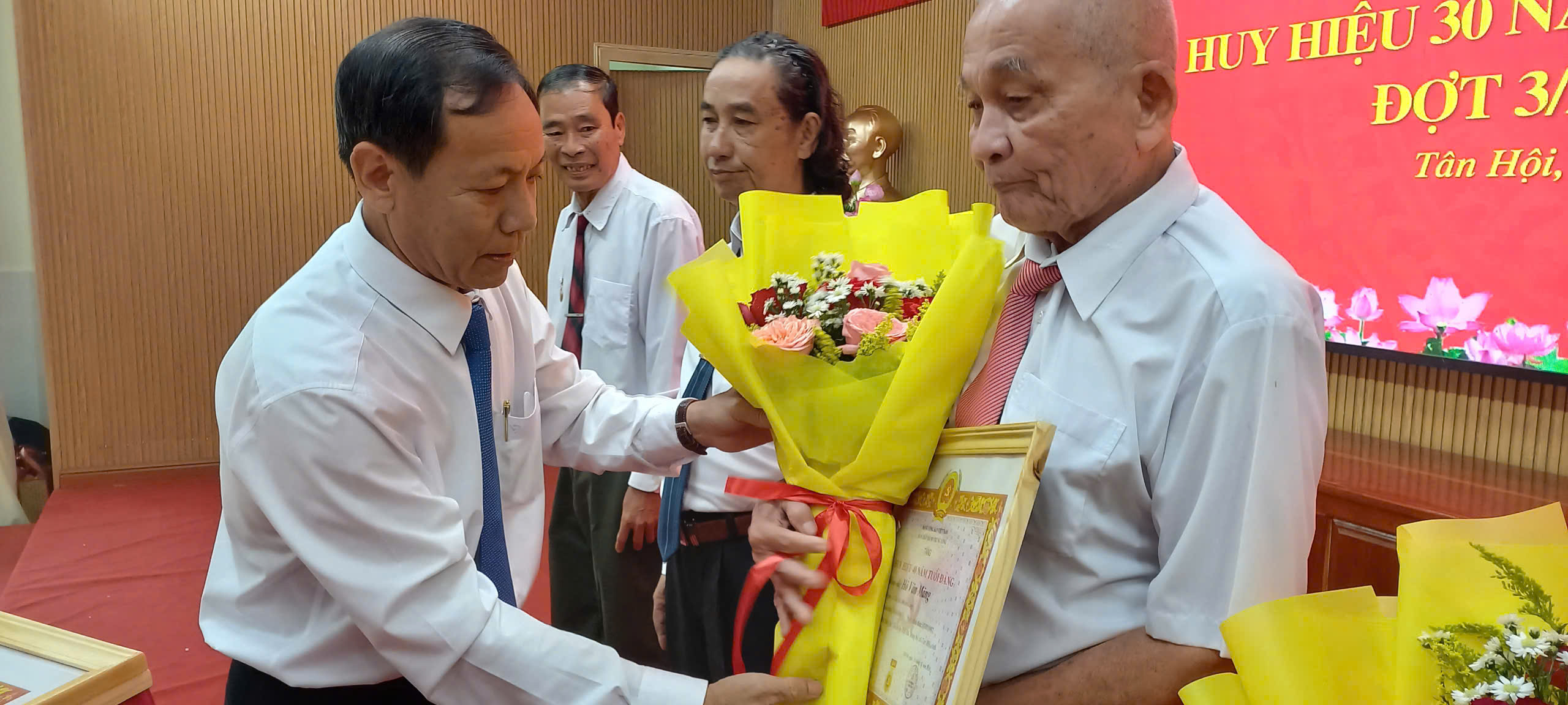 Trong đợt trao tặng Huy hiệu Đảng lần này, xã Tân Hội có 07 đồng chí được trao Huy hiệu 30 năm tuổi Đảng, gồm các đồng chí: Lâm Văn Út, Nguyễn Văn Nghĩa, Nguyễn Hữu Thanh, Trương Minh Hiển, Đỗ Thanh Bửu, Doãn Việt Xô, Trần Văn Biên; và 04 đồng chí được trao Huy hiệu 40 năm tuổi Đảng, gồm các đồng chí: Đỗ Phước Sinh, Hồ Văn Măng, Trần Hữu Phước, Đỗ Huyền Dưng.