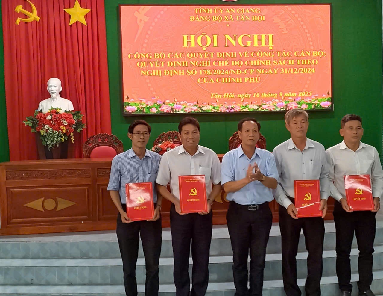 Công bố các quyết định theo Nghị định 178/2024/NĐ-CP (được sửa đổi, bổ sung tại Nghị định 67/2025/NĐ-CP của Chính phủ) của Chính phủ đối với các đồng chí nghỉ hưu trước tuổi đồng chí Trần Quang Vinh, Nguyễn Văn Biên, công chức Phòng Kinh tế xã; Quyết định nghỉ thôi việc hưởng chính sách theo nghị định 178/2024/NĐ-CP (được sửa đổi, bổ sung tại Nghị định 67/2025/NĐ-CP của Chính phủ) của Chính phủ đối với đồng chí Trần Văn Hải, đồng chí Trương Thùy Thu Trúc, viên chức Phòng Văn hóa - Xã hội; đồng chí Trương Bích Diệp, công chức Phòng Văn hóa- Xã hội; Đồng chí Nguyễn Văn Thanh Bằng, Phó Trưởng Phòng Kinh tế; đồng chí Đặng Nhật Bình, Nguyễn Quang Tuấn, công chức Phòng Kinh tế; đồng chí Nguyễn Thị Kim Huệ, Nguyễn Bảo Ngọc, công chức VP HĐND-UBND và đồng chí Đinh Quốc trí, công chức Trung tâm Phục vụ hành chính công xã.
