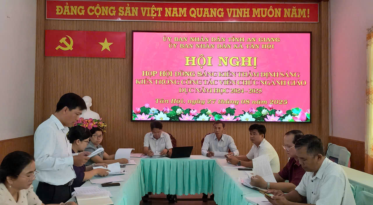 Cùng tham dự với Hội đồng Sáng kiến có ông Đặng Xuân Trọng, Hiệu trưởng Tiểu học và THCS Tân An; ông Trần Hoàng Khải, Hiệu trưởng Tân Hòa 1, bà Nguyễn Thị Hà, Hiệu Trưởng trường Mẫu giáo Tân Thành là tổ trưởng các cụm chấm sáng kiến của các cấp học trên địa bàn xã Tân Hội