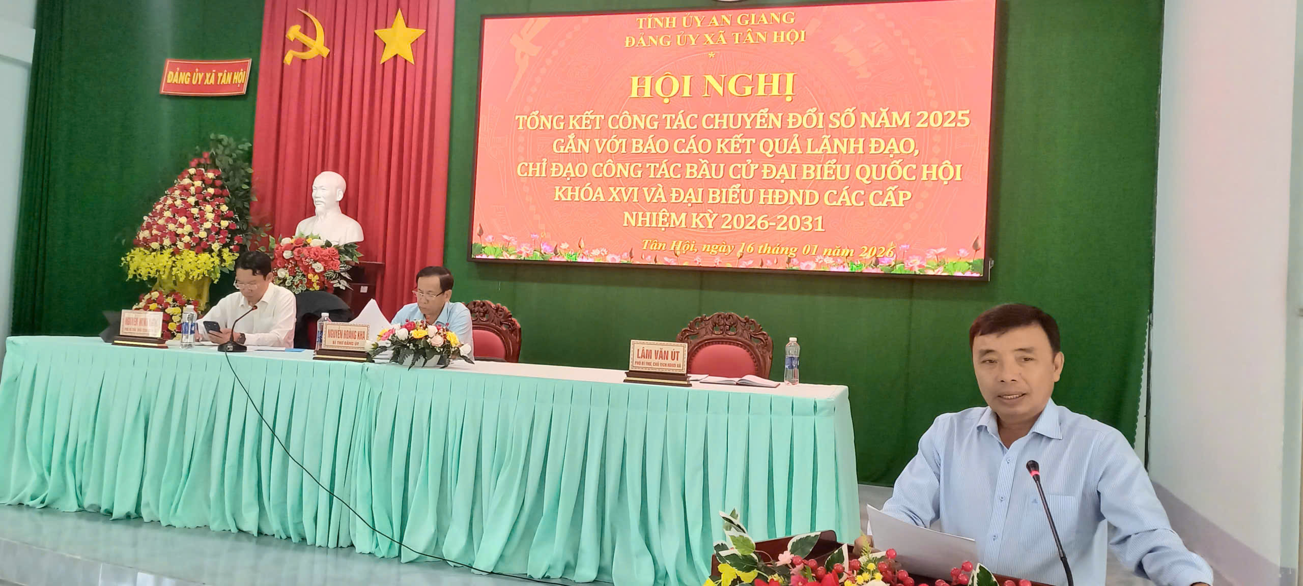 Sáng ngày 16/01/2026, Đảng ủy xã Tân Hội tổ chức Hội nghị tổng kết công tác chuyển đổi số năm 2025, gắn với báo cáo kết quả lãnh đạo, chỉ đạo công tác bầu cử đại biểu Quốc hội khóa XVI và đại biểu HĐND các cấp, nhiệm kỳ 2026–2031.