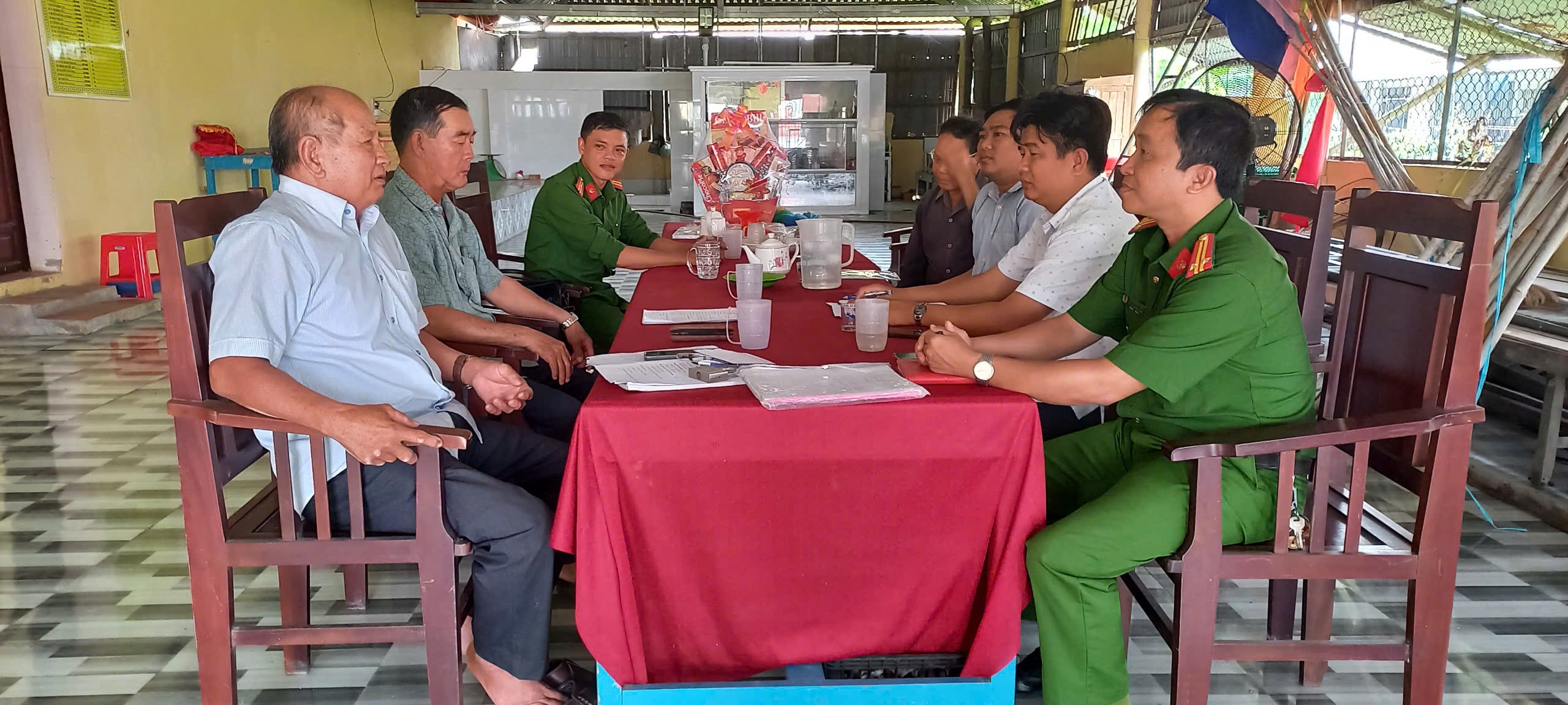 Đoàn công tác do ông Hồ Anh Tuấn, Trưởng Phòng Văn hóa - Xã hội làm trưởng đoàn. Tham gia đoàn có đại diện lãnh đạo Công an xã, Văn phòng HĐND-UBND xã, lãnh đạo ấp Phú Hội và Ban Bảo vệ di tích.