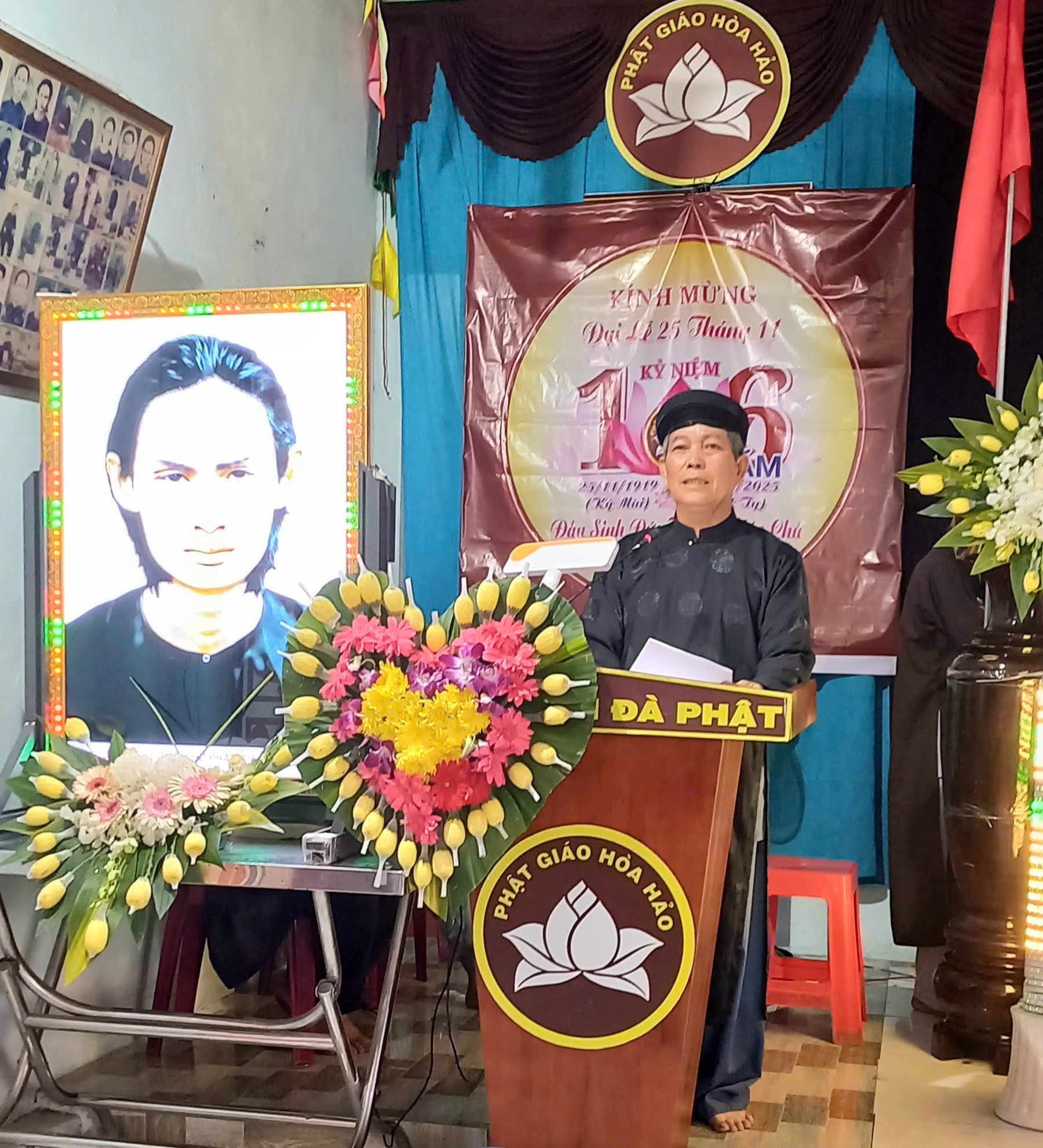 Ông Nguyễn Minh Ngọc phát biểu ghi nhận những đóng góp của Ban Trị sự Phật giáo Hòa Hảo xã Tân Hội
