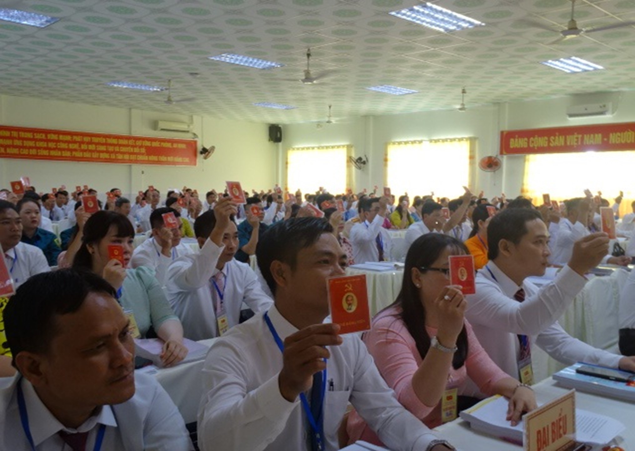 Đảng viên biểu quyết bầu đoàn chủ tịch