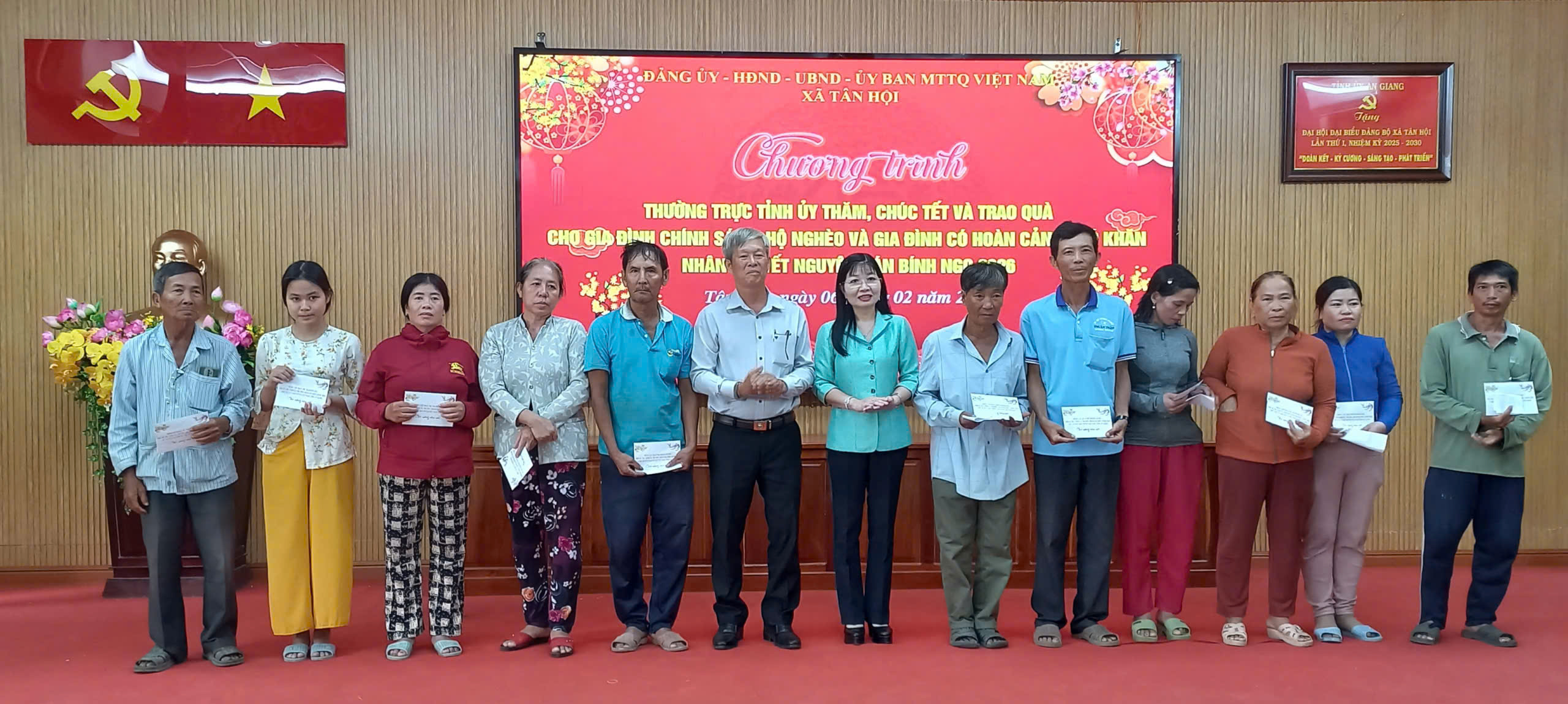Nhân dịp này, đồng chí đã trao 86 suất quà, mỗi suất trị giá 500.000 đồng cho các gia đình; riêng 34 gia đình chính sách được trao thêm mỗi gia đình một phần quà Tết, thể hiện sự quan tâm, chăm lo của lãnh đạo tỉnh đối với Nhân dân địa phương.