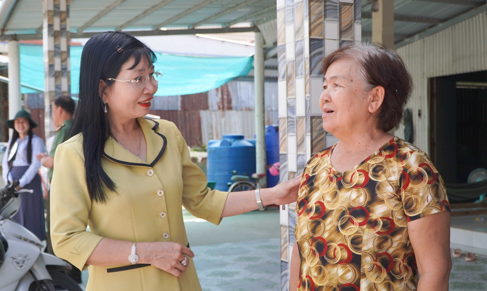 Phó Bí thư Tỉnh ủy, Chủ tịch Ủy ban MTTQ Việt Nam tỉnh An Giang Trần Thị Thanh Hương biểu dương người dân tự nguyện tháo dỡ hàng rào phục vụ thi công.