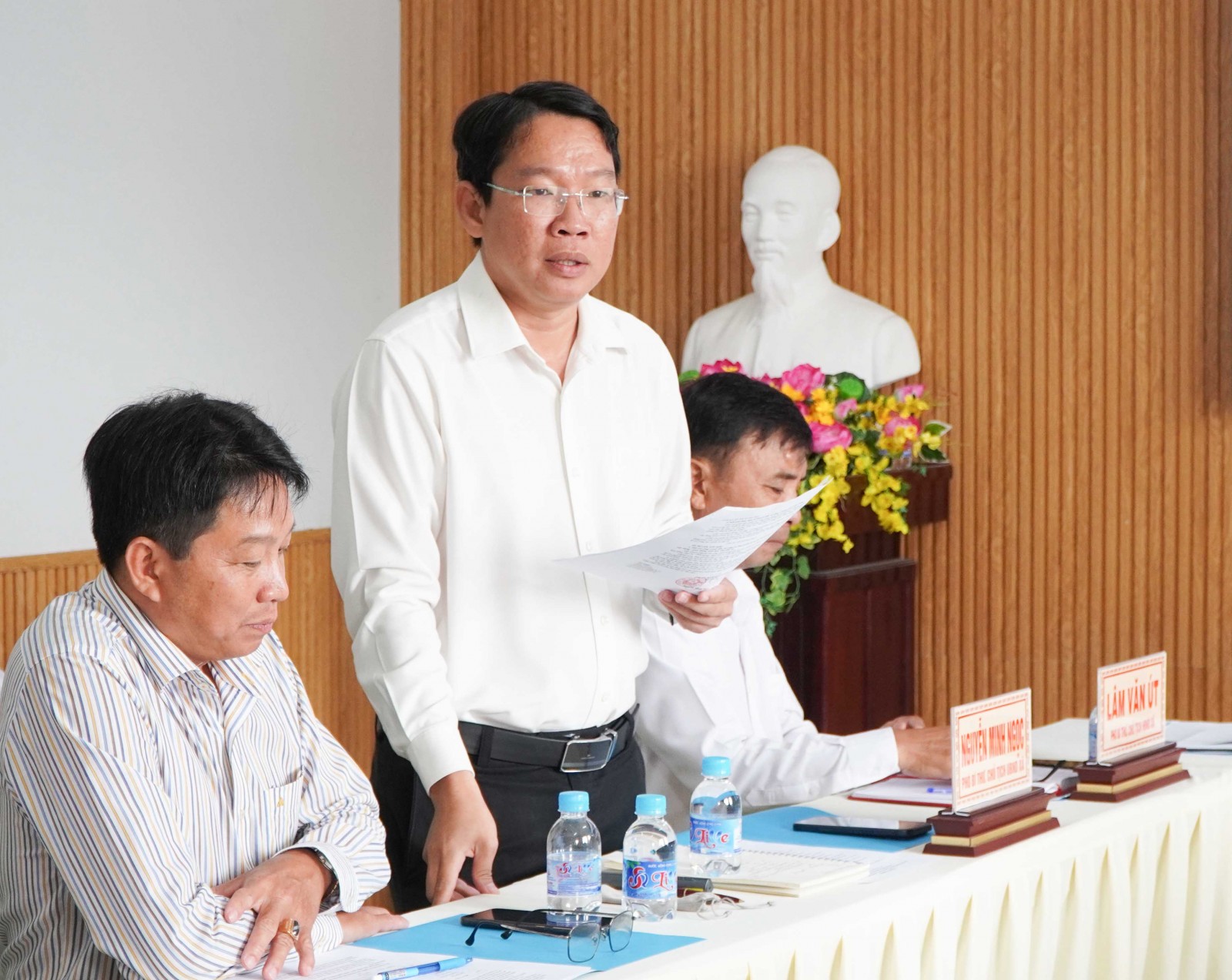 Bí thư Đảng ủy xã Tân Hội Nguyễn Hoàng Kha phát biểu tại buổi làm việc.
