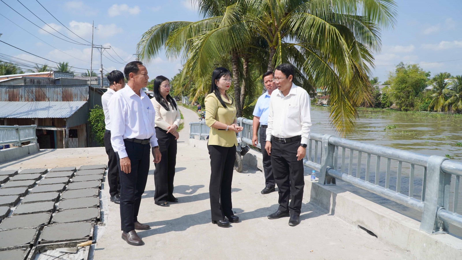 Phó Bí thư Tỉnh ủy, Chủ tịch Ủy ban MTTQ Việt Nam tỉnh An Giang Trần Thị Thanh Hương kiểm tra thực tế dự án đường kênh Rạch Giá - Long Xuyên phía bờ Nam và các cầu trên tuyến.