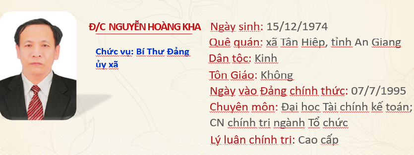 | Đồng chí Nguyễn Hoàng Kha, Bí thư Đảng ủy xã Tân Hội | ![]() |