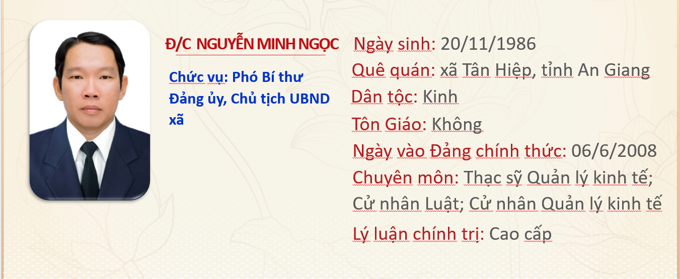 | Đồng chí Nguyễn Minh Ngọc, Phó Bí thư- Chủ tịch UBND xã | ![]() |