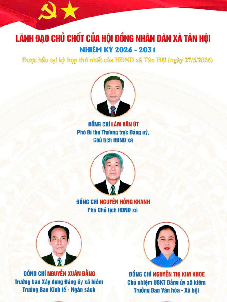 Chiều ngày 27/3/2026, tại Hội trường Đảng ủy xã Tân Hội, Hội đồng nhân dân (HĐND) xã Tân Hội khóa XIII, nhiệm kỳ 2026 – 2031 đã tổ chức Kỳ họp thứ Nhất.