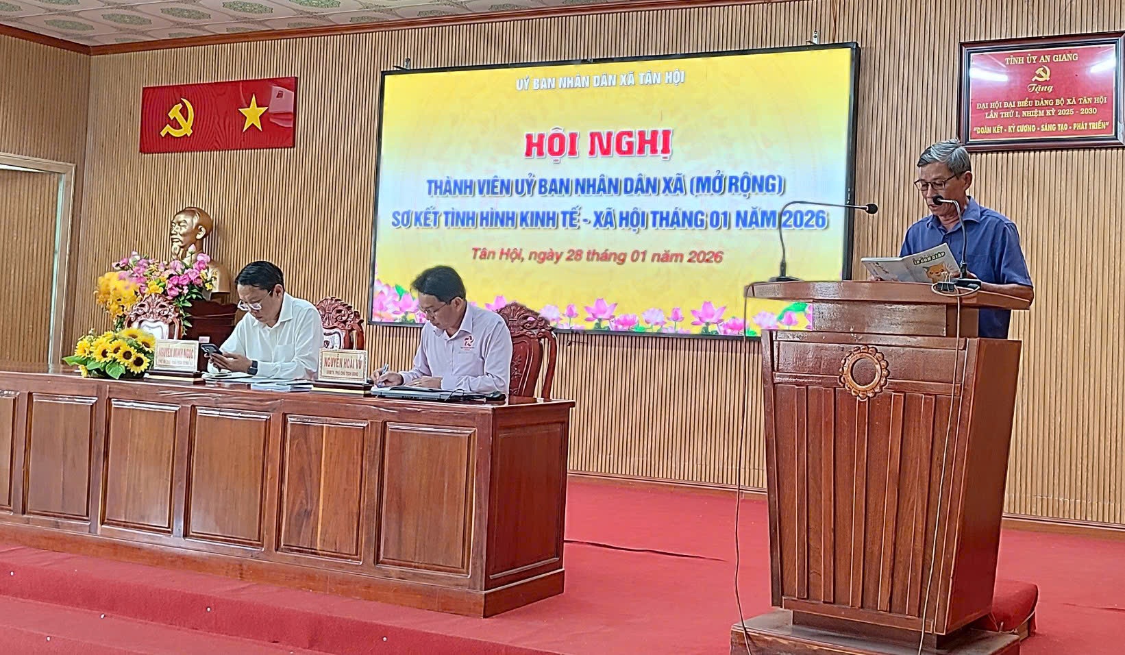 Chiều ngày 28/01/2026, Ủy ban nhân dân xã Tân Hội tổ chức Hội nghị thành viên UBND xã (mở rộng) nhằm sơ kết tình hình kinh tế – xã hội tháng 01 và triển khai nhiệm vụ trọng tâm tháng 02 năm 2026. Hội nghị do ông Nguyễn Minh Ngọc – Chủ tịch UBND xã chủ trì.