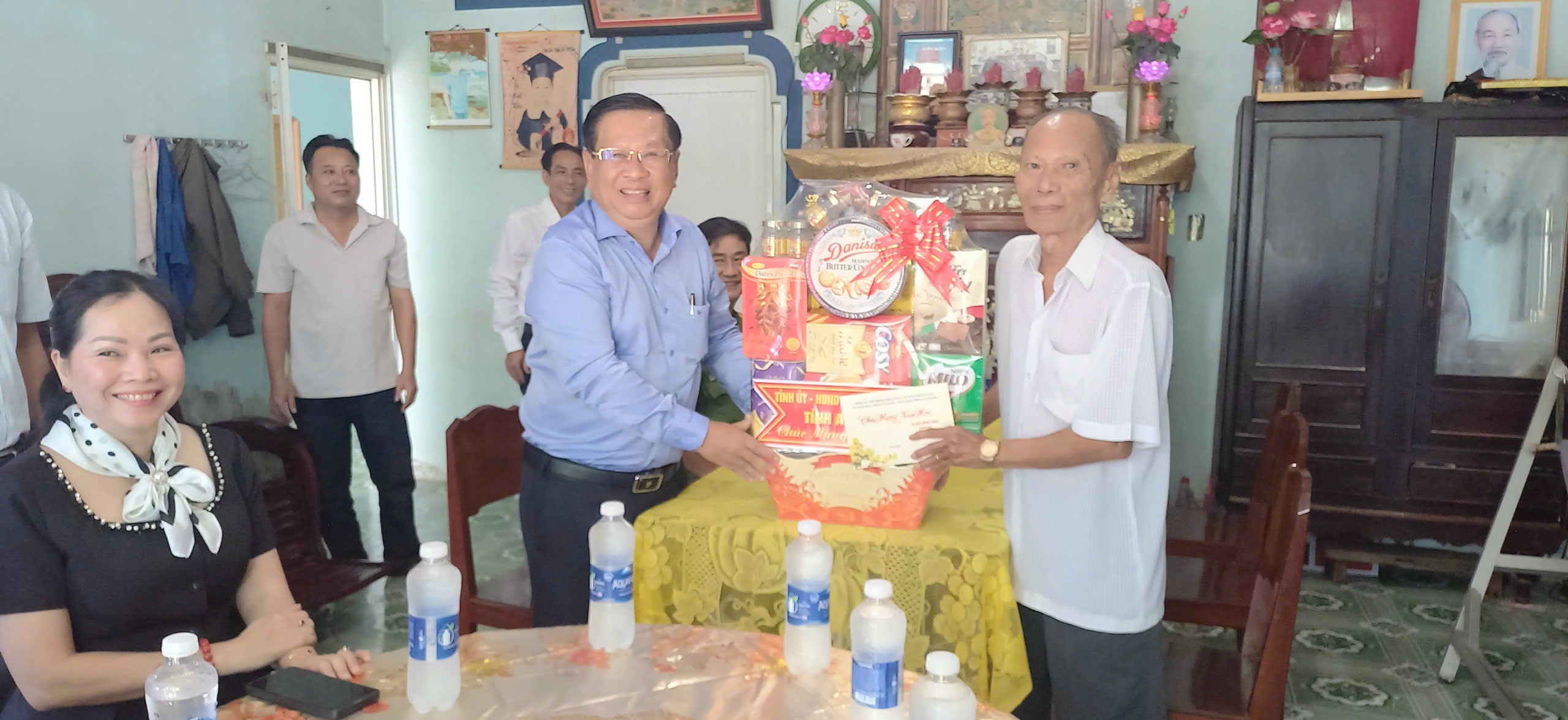 Nhân dịp này, đoàn công tác đã đến thăm gia đình có công cách mạng ông Võ Hoàng Oanh, tổ 2, ấp Đập Đá, Thương binh hạng 2/4, lão thành cách mạng, Nguyên Phó Bí thư Chi bộ xã Tân Hội (cũ) giai đoạn 1969 – 1973, và gửi lời chúc Tết, tri ân những đóng góp của gia đình cho sự nghiệp cách mạng của địa phương.