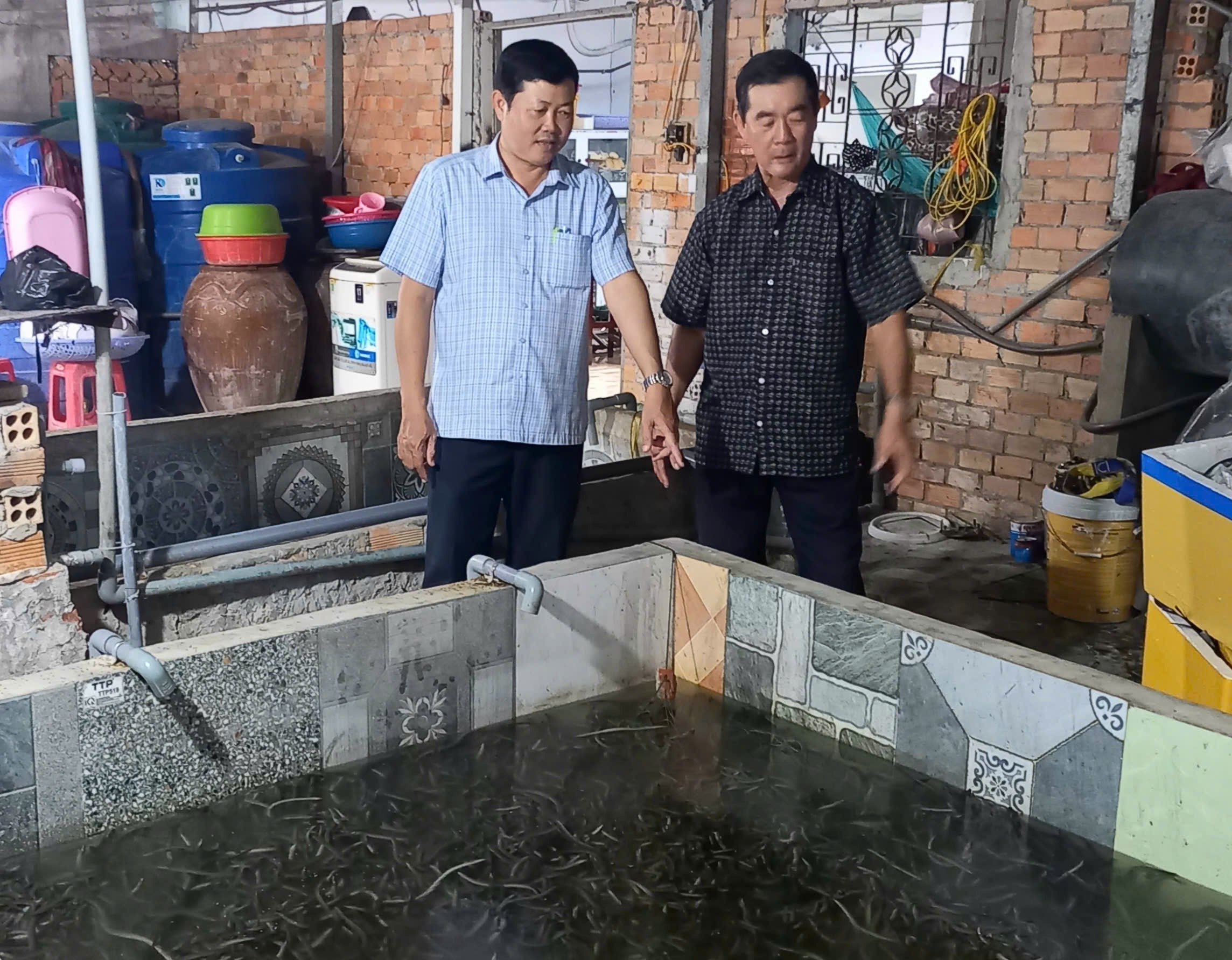 Ông Nguyễn Văn Vọng – Bí thư kiêm Trưởng ấp Phú Hội chia sẽ kỹ thuật nuôi lương tại nhà
