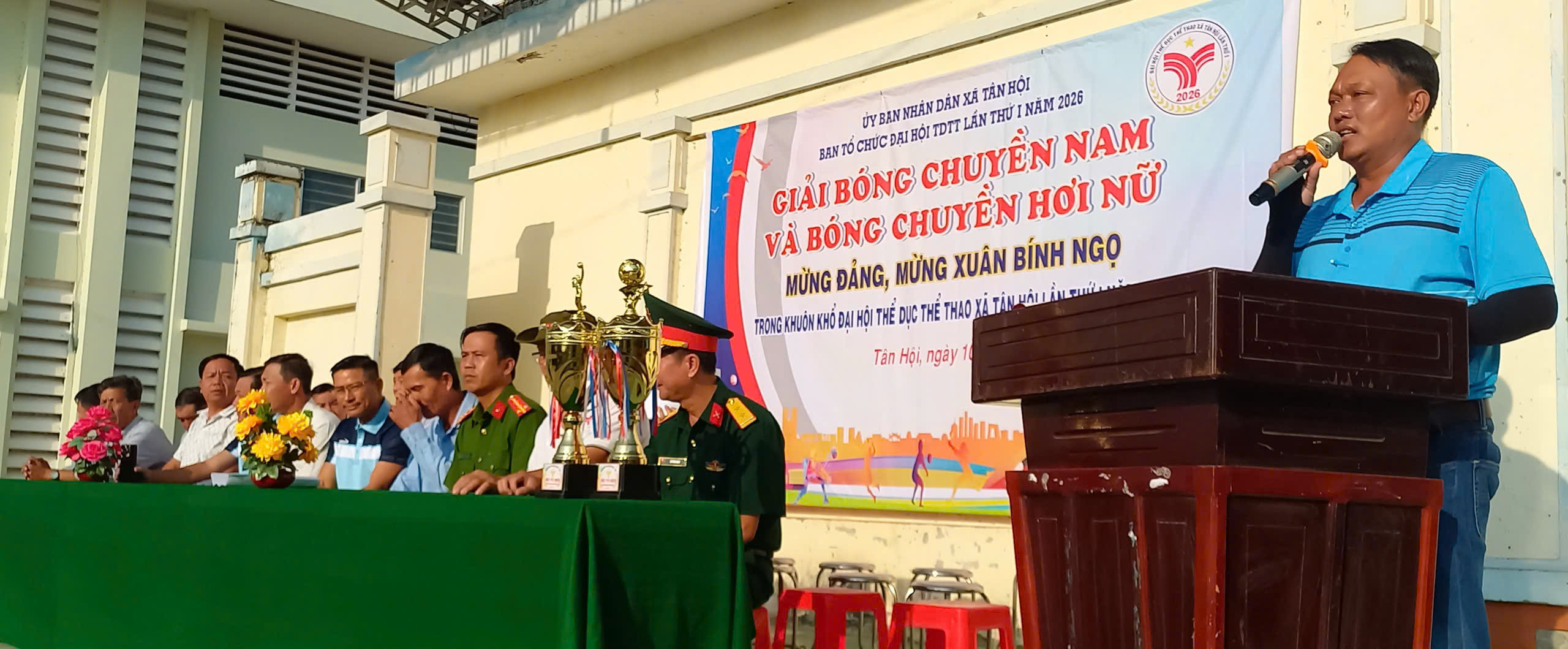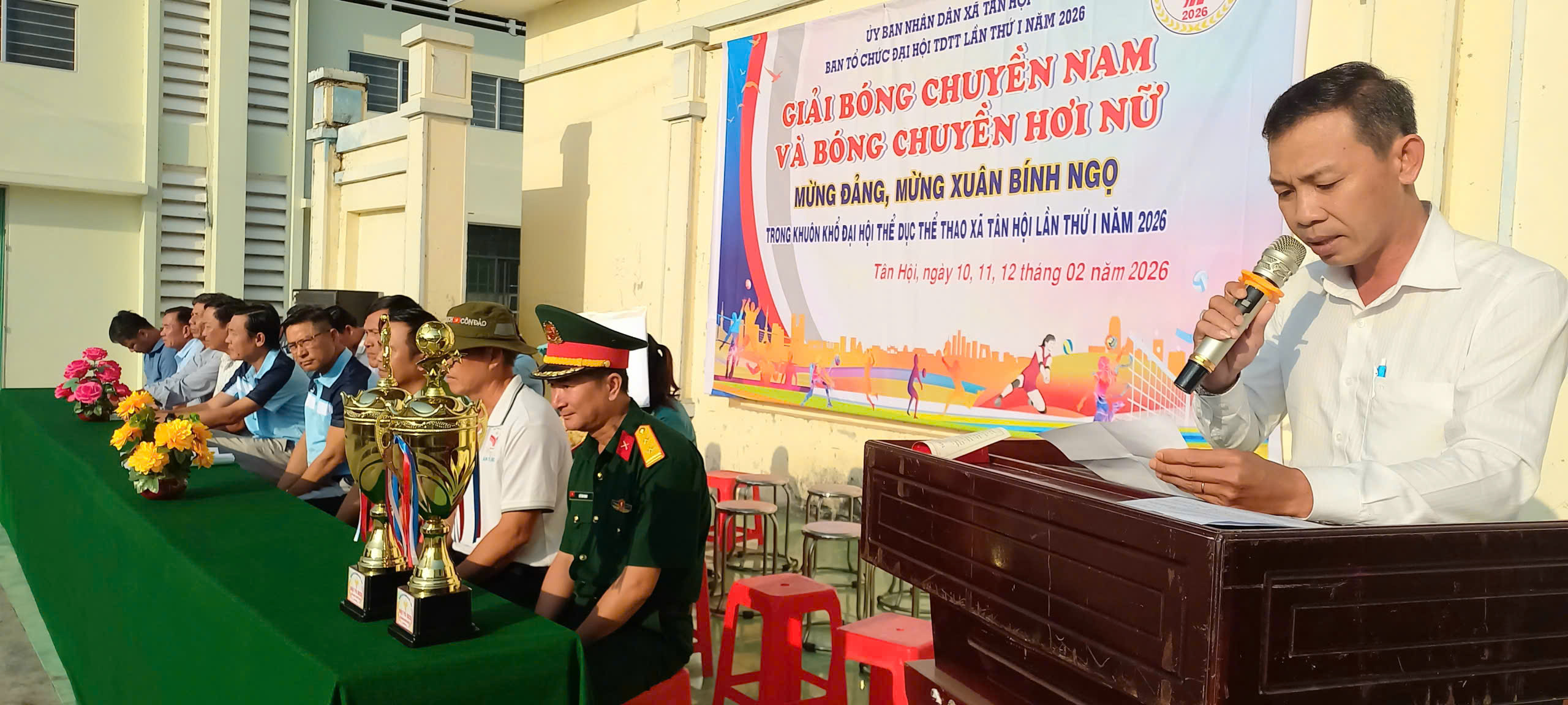 Sáng ngày 10/02/2026, tại Trung tâm Thể dục Thể thao xã Tân Hội, UBND xã long trọng tổ chức Giải bóng chuyền hơi nữ và bóng chuyền nam trong khuôn khổ Đại hội Thể dục Thể thao xã Tân Hội lần thứ I, chào mừng Tết Nguyên đán Bính Ngọ năm 2026.