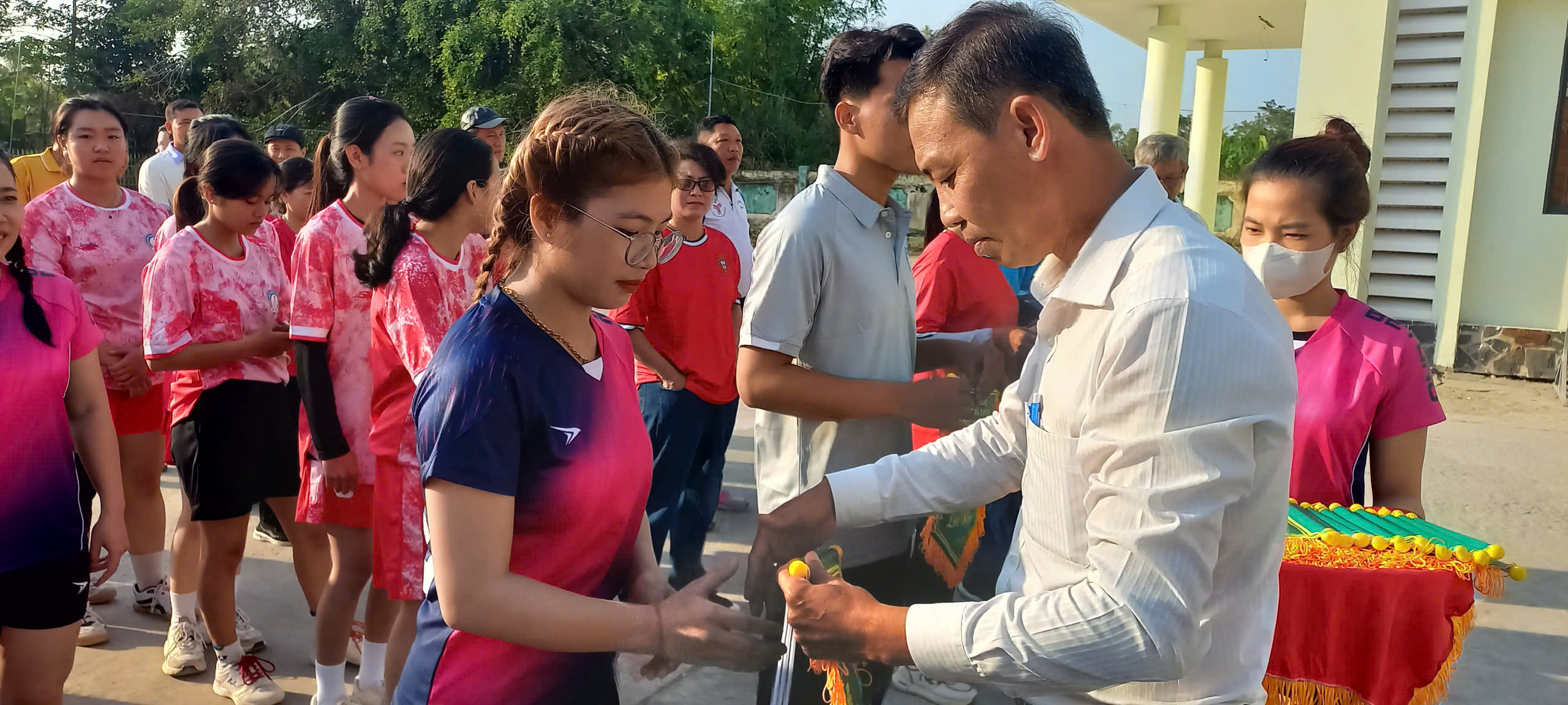 Đồng chí Lê Quang Nhựt tặng cờ Ban tổ chức cho đội tham gia