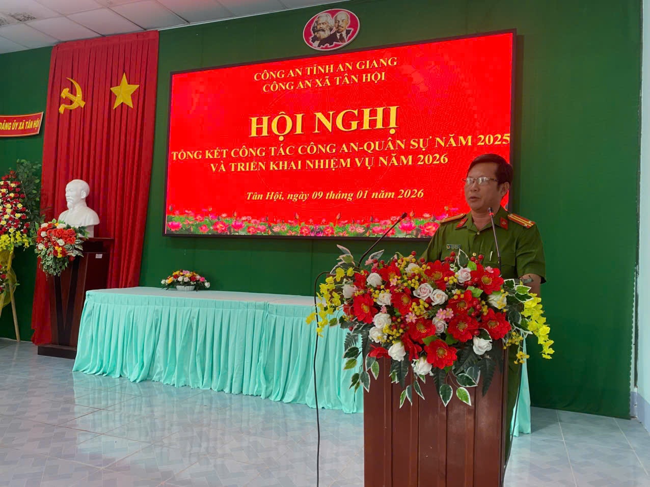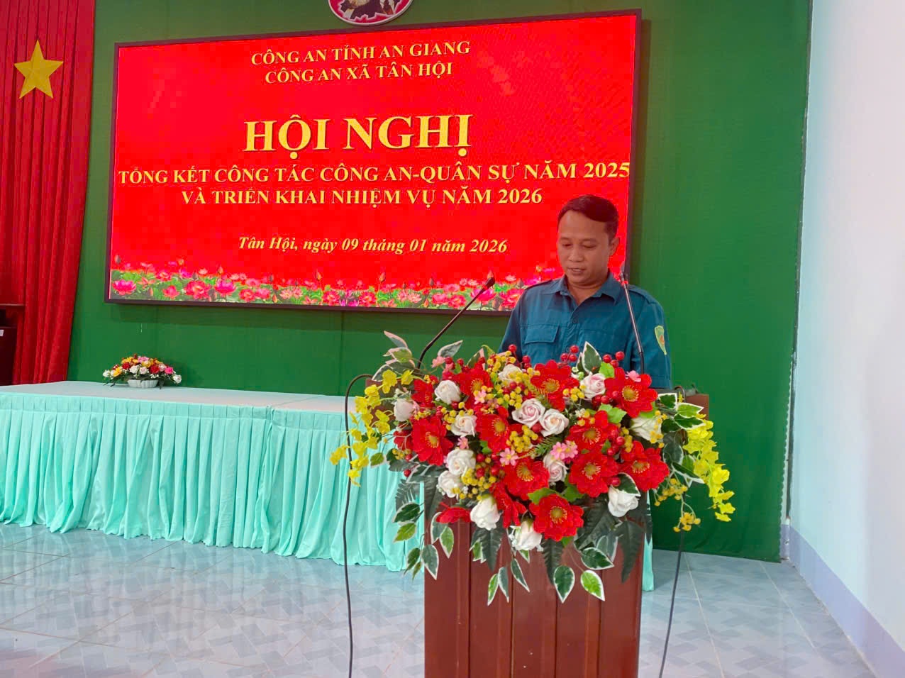 Chiều ngày 09/01/2026, tại Hội trường Đảng ủy xã Tân Hội, Công an xã Tân Hội phối hợp với Ban Chỉ huy Quân sự xã tổ chức Hội nghị tổng kết công tác Công an – Quân sự năm 2025.