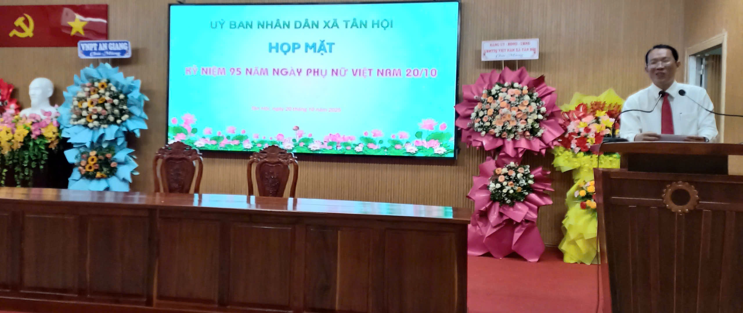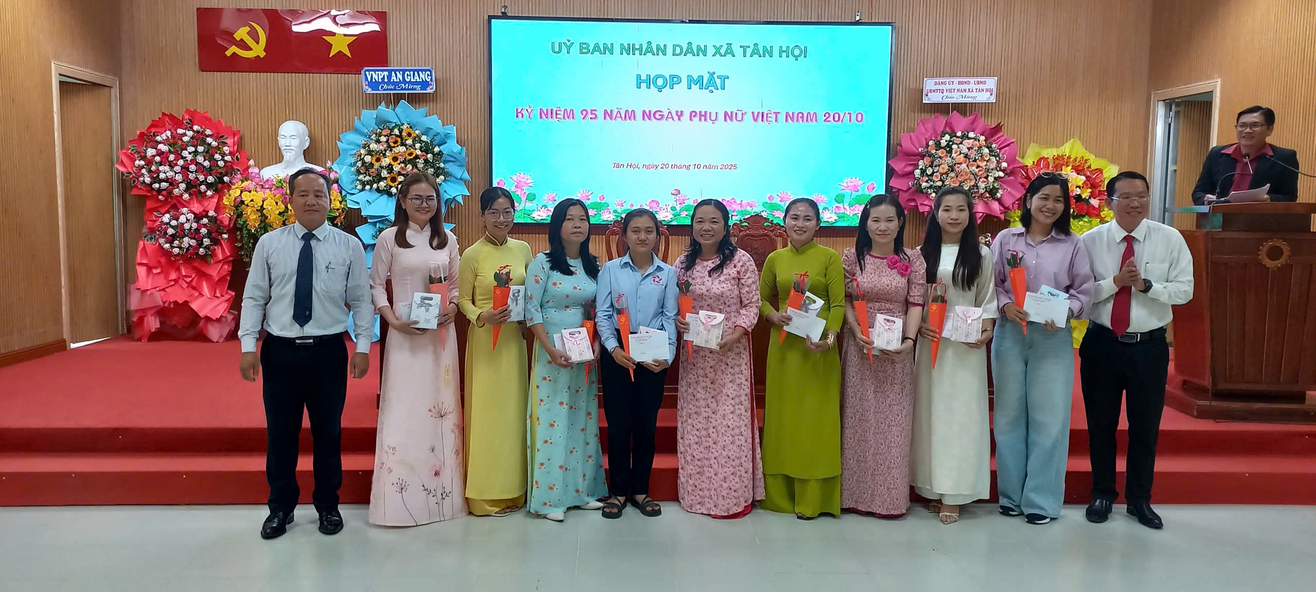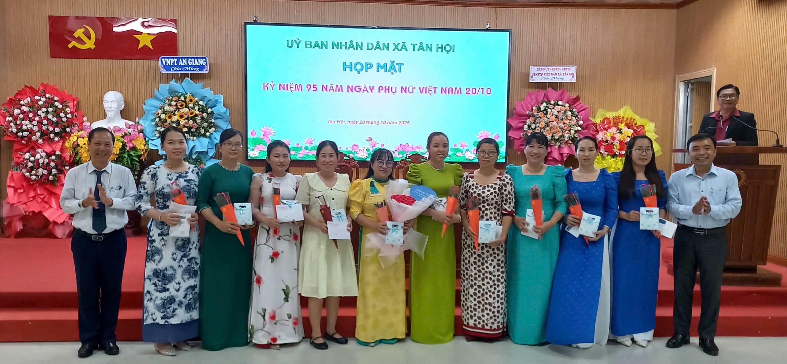 Tại buổi họp mặt, ông Nguyễn Minh Ngọc, Phó Bí thư Đảng ủy, Chủ tịch UBND xã đã ôn lại truyền thống vẻ vang của phụ nữ Việt Nam qua các thời kỳ, khẳng định vai trò, vị thế quan trọng của người phụ nữ trong gia đình và xã hội. Đồng thời, ông gửi lời chúc mừng tốt đẹp nhất đến toàn thể chị em phụ nữ nhân ngày 20/10, chúc các chị em luôn mạnh khỏe, hạnh phúc và tiếp tục phát huy tinh thần đoàn kết, năng động, sáng tạo, góp phần xây dựng xã Tân Hội ngày càng phát triển.