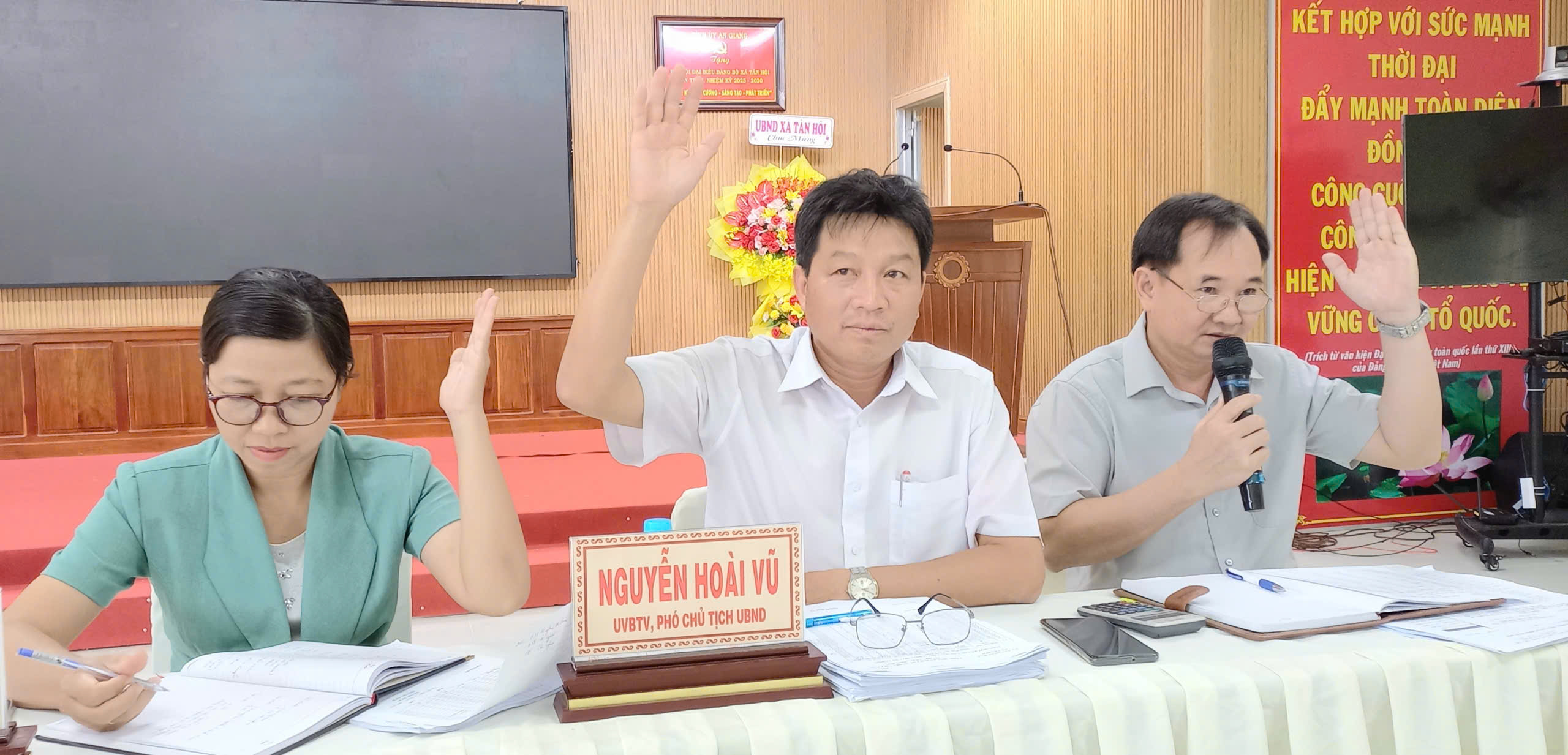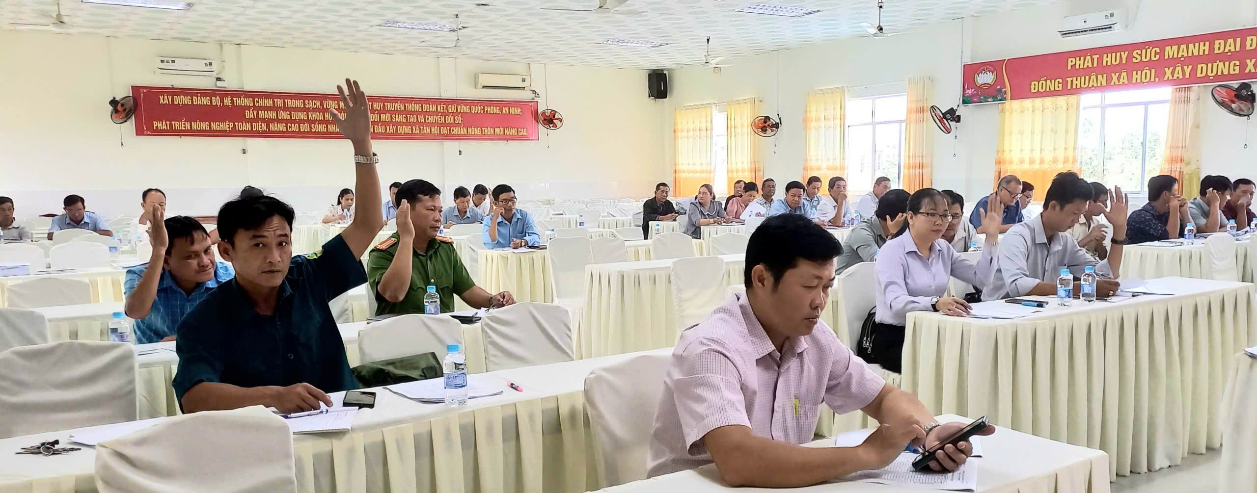 Ban Chỉ đạo rà xét hộ nghèo, cận nghèo biểu quyết thống nhất danh sách hộ nghèo, cận nghèo.