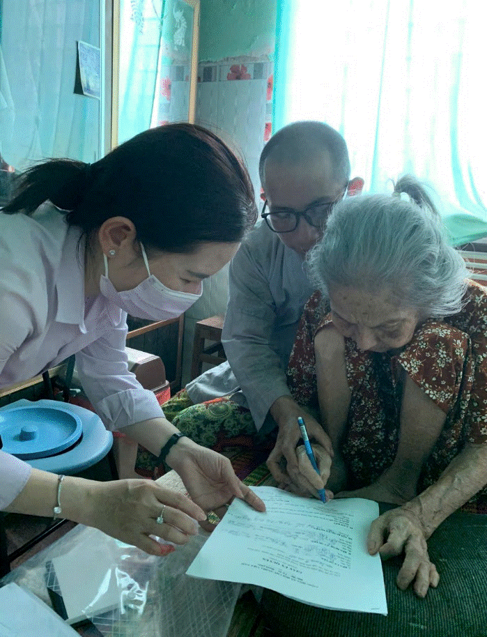 Để tạo điều kiện thuận lợi cho người già, người bệnh tật, mất khả năng đi lại, Trung tâm Phục vụ Hành chính công xã đã thành lập tổ công tác gồm công chức phụ trách Chứng thực, công chức phụ trách Bảo trợ Xã hội, Đoàn thanh niên và lãnh đạo các ấp trực tiếp đến tận hộ gia đình. Tại đây, tổ công tác thực hiện chứng thực chữ ký ủy quyền, giúp người thân trong gia đình có thể thay mặt nhận tiền bảo trợ xã hội qua bưu điện.