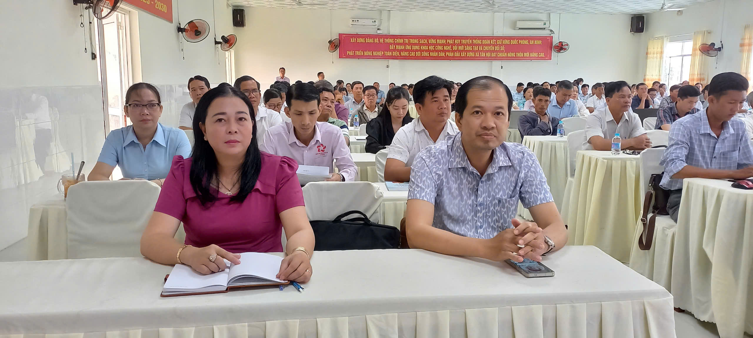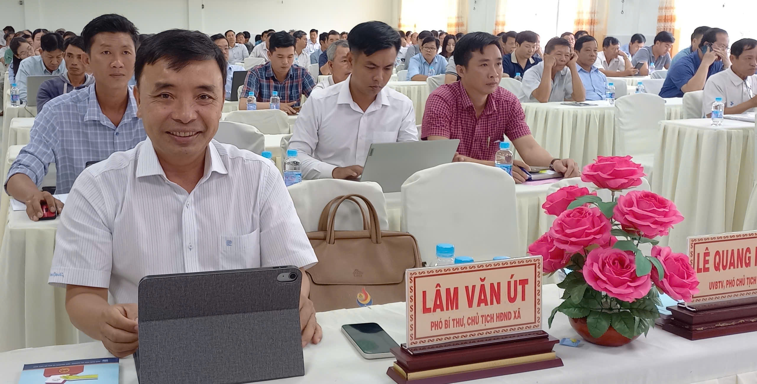 Tham dự hội nghị tại điểm cầu xã Tân Hội có đồng chí Lâm Văn Út – Phó Bí thư Thường trực Đảng ủy, Chủ tịch HĐND xã; đồng chí Bùi Quốc Du – Chủ tịch Ủy ban MTTQ Việt Nam xã; cùng các đồng chí trong Ban Chỉ đạo bầu cử, thành viên Tổ giúp việc công tác tổng hợp và nghiệp vụ Ban bầu cử, thành viên các Tổ bầu cử trên địa bàn xã.