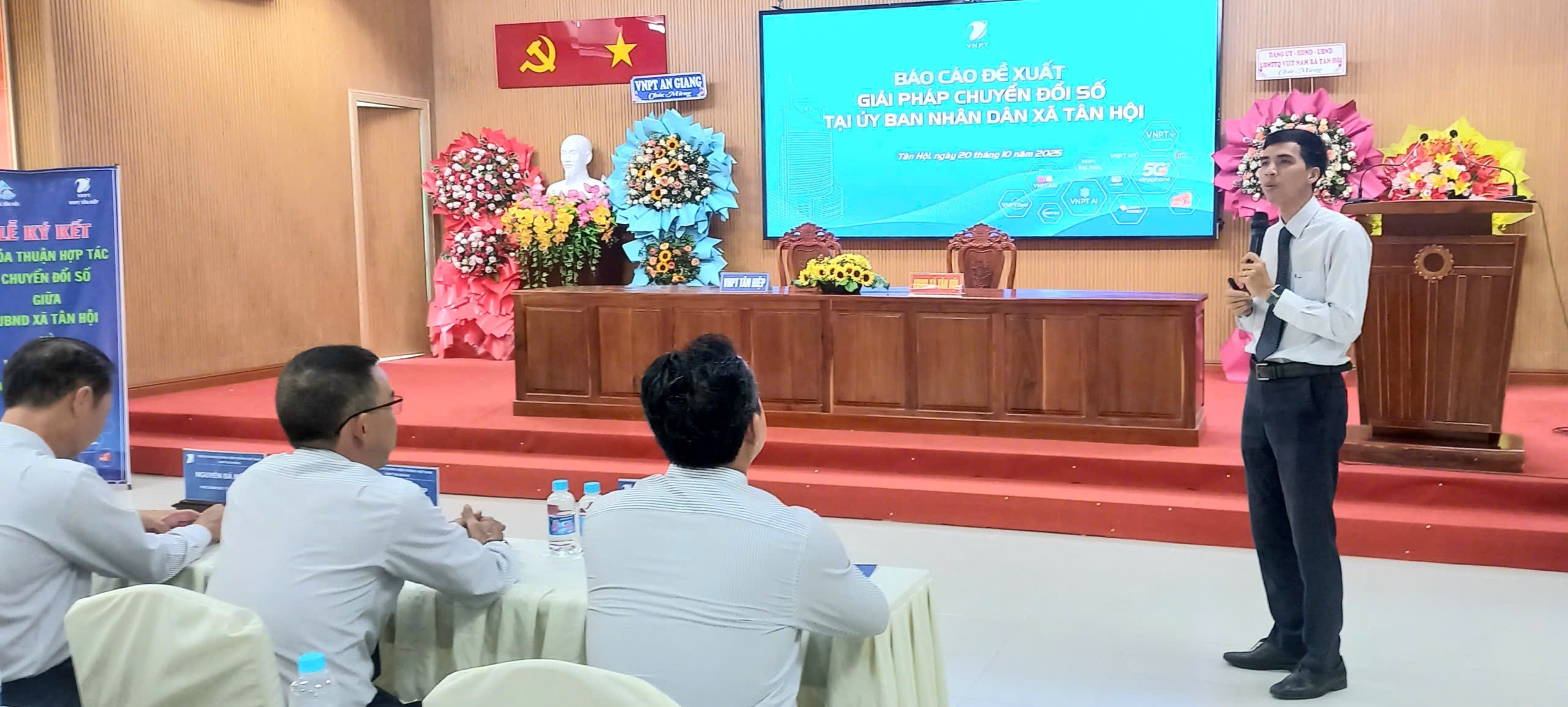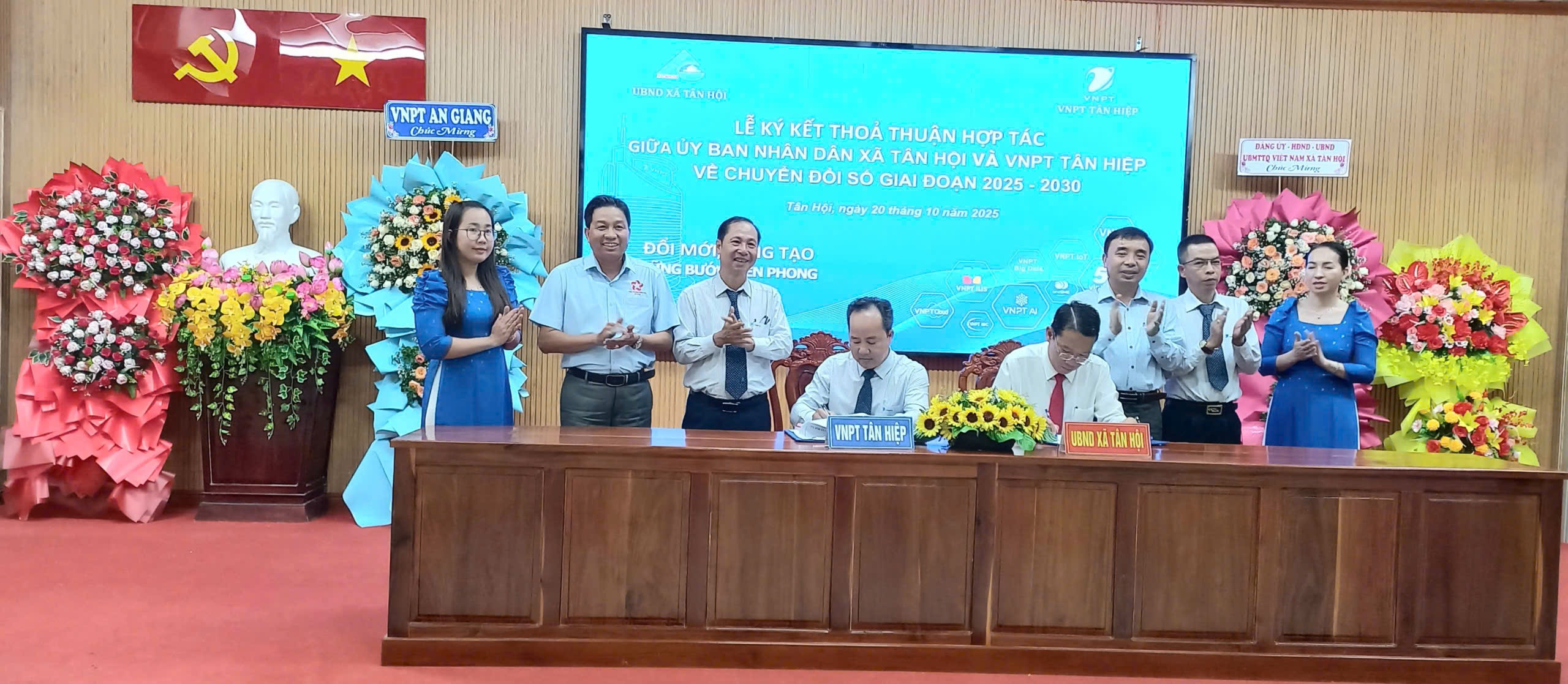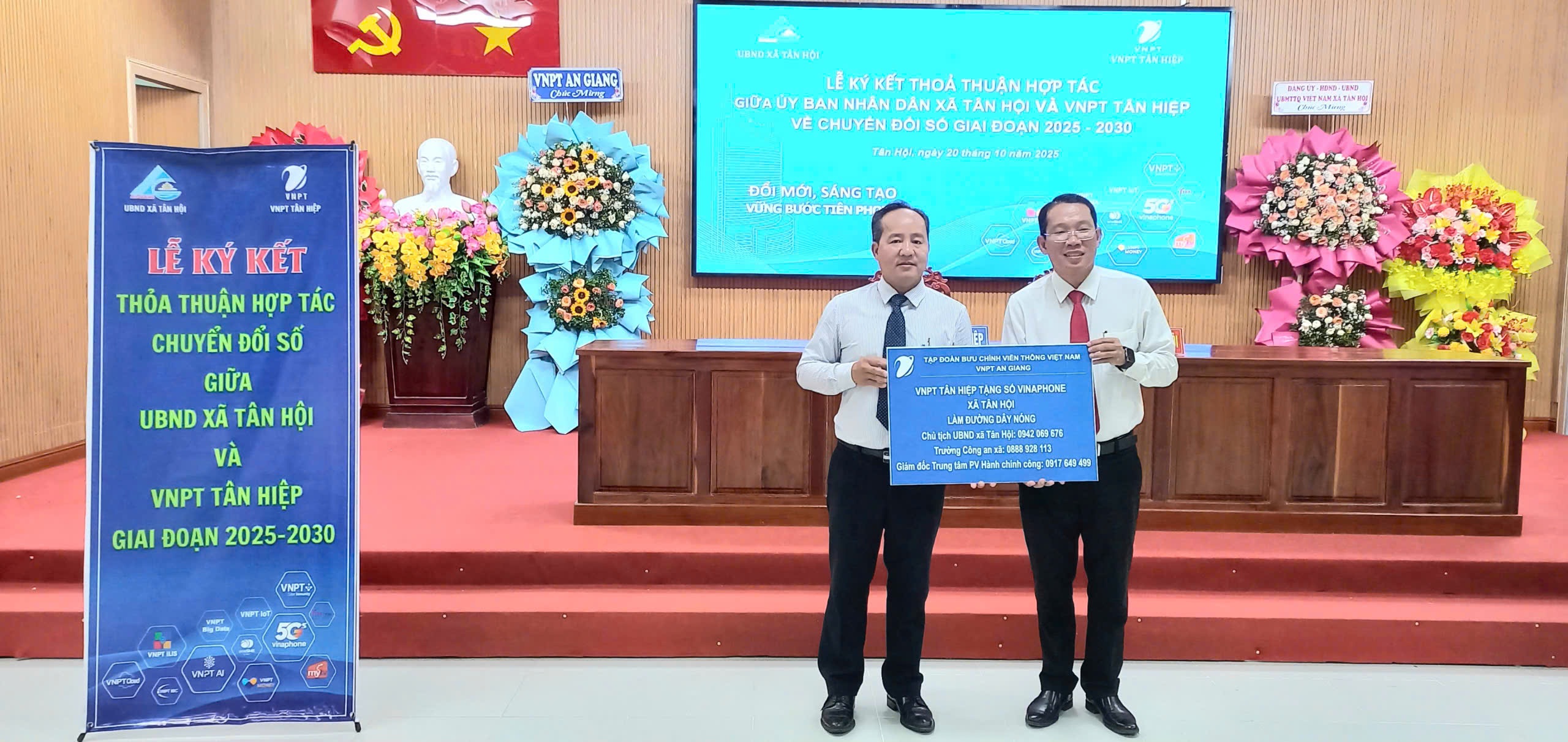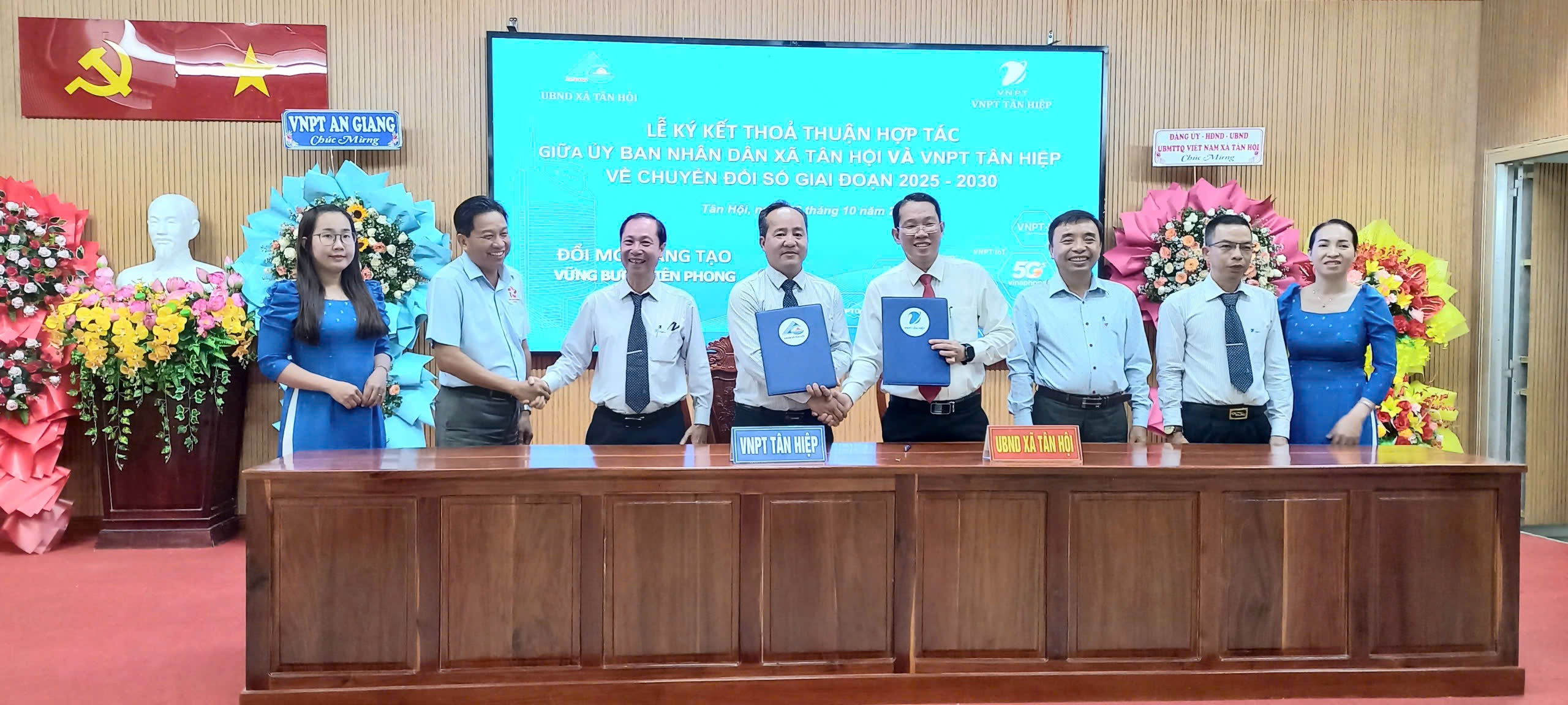 Tại lễ ký kết, lãnh đạo UBND xã Tân Hội và VNPT Tân Hiệp đã ký kết thỏa thuận hợp tác chuyển đổi số giai đoạn 2025–2030, nhằm tăng cường ứng dụng công nghệ thông tin trong hoạt động quản lý, điều hành và phục vụ người dân.